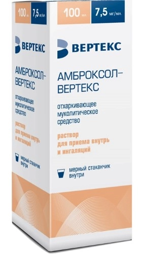 Амброксол Вертекс не следует применять совместно с противокашлевыми препаратами, которые могут тормозить кашлевой рефлекс и затруднять выведение мокроты.