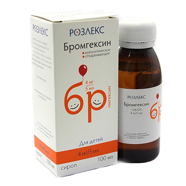 Действующее вещество: бромгексина гидрохлорид (80 мг или 160 мг в 100 мл сиропа).