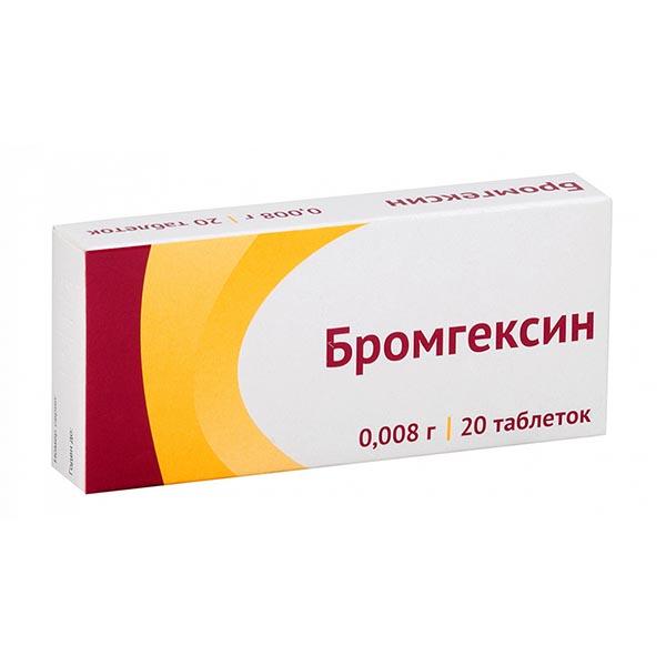 Действующее вещество: бромгексина гидрохлорид 0,008 г.